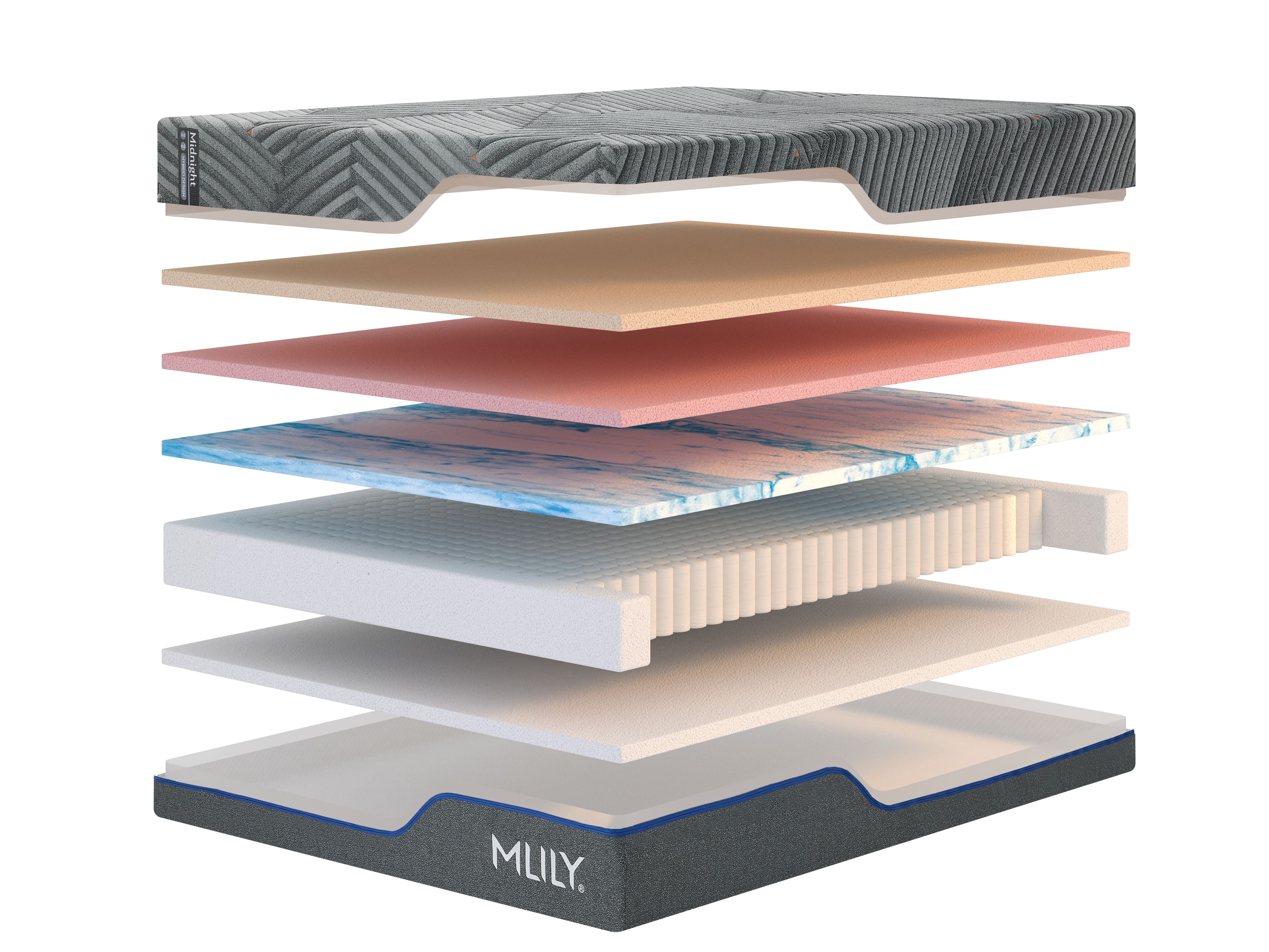 support to keep the spine aligned so the sleeper’s muscles relax instead of tightening to compensate. This high-grade foam completes the bottom of the mattress to provide long-lasting durability and support for the top layers.